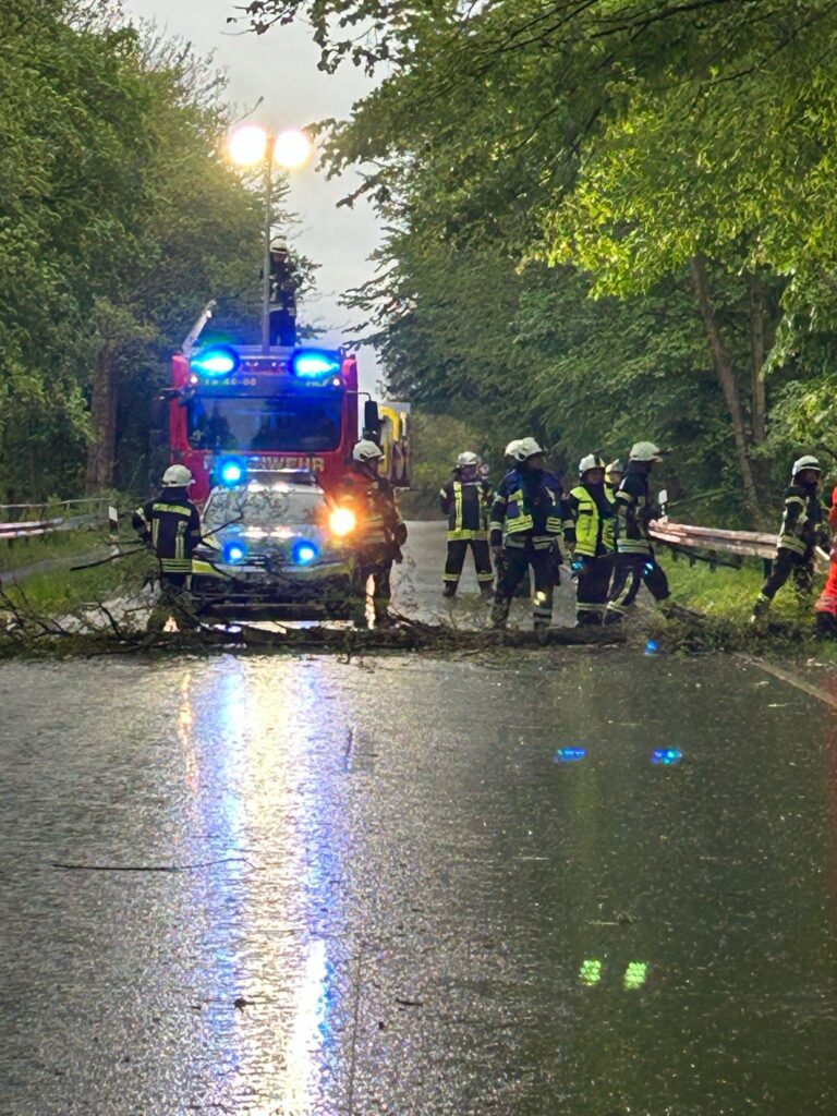 Wir schnitten den umgefallenen Baum mit der Motorsäge klein und befreiten anschließend die Straße vom Holz. Nachdem wir die Straße sauber gefegt hatten, wurde diese wieder für den Verkehr freigegeben.