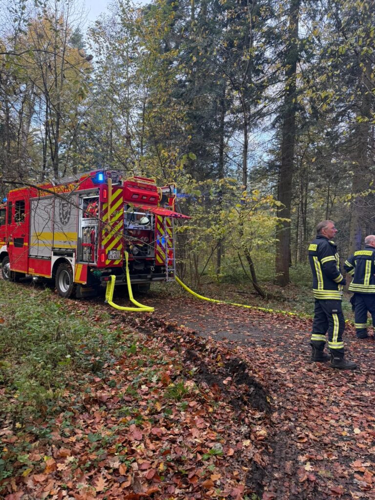 Bei der Ankunft war eine deutliche Rauchentwicklung sichtbar. Es handelte sich um einen Entstehungsbrand im Bereich einer Waldfläche. Die betroffene Stelle wurde mit leichtem Netzmittel abgelöscht. Insgesamt wurden ca. 5000 Liter Wasser verbraucht. Zur Einsatzstelle wurde der zuständige Förster hinzugezogen. Dieser entschird, dass ein betroffener Baum, von dem der Brand ausging, gefällt werden muss. Das Fällen wurde durch unser Fachpersonal durchgeführt.